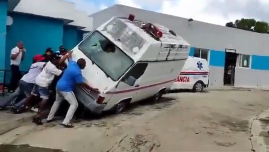 Loma de Cabrera, Dajabón. – Circula en redes sociales un vídeo que muestra el momento en que ciudadanos de Loma de Cabrera, en Dajabón, voltean una ambulancia en señal de protesta. La indignación de la comunidad surgió tras el fallecimiento de un joven accidentado en el Hospital Dr. Ramón Adriano Villalona, debido a que no había una ambulancia en condiciones para trasladarlo.